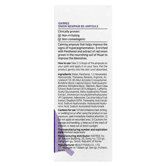 Isntree - Ampolla Facial Onion Newpair B5 Ampoule