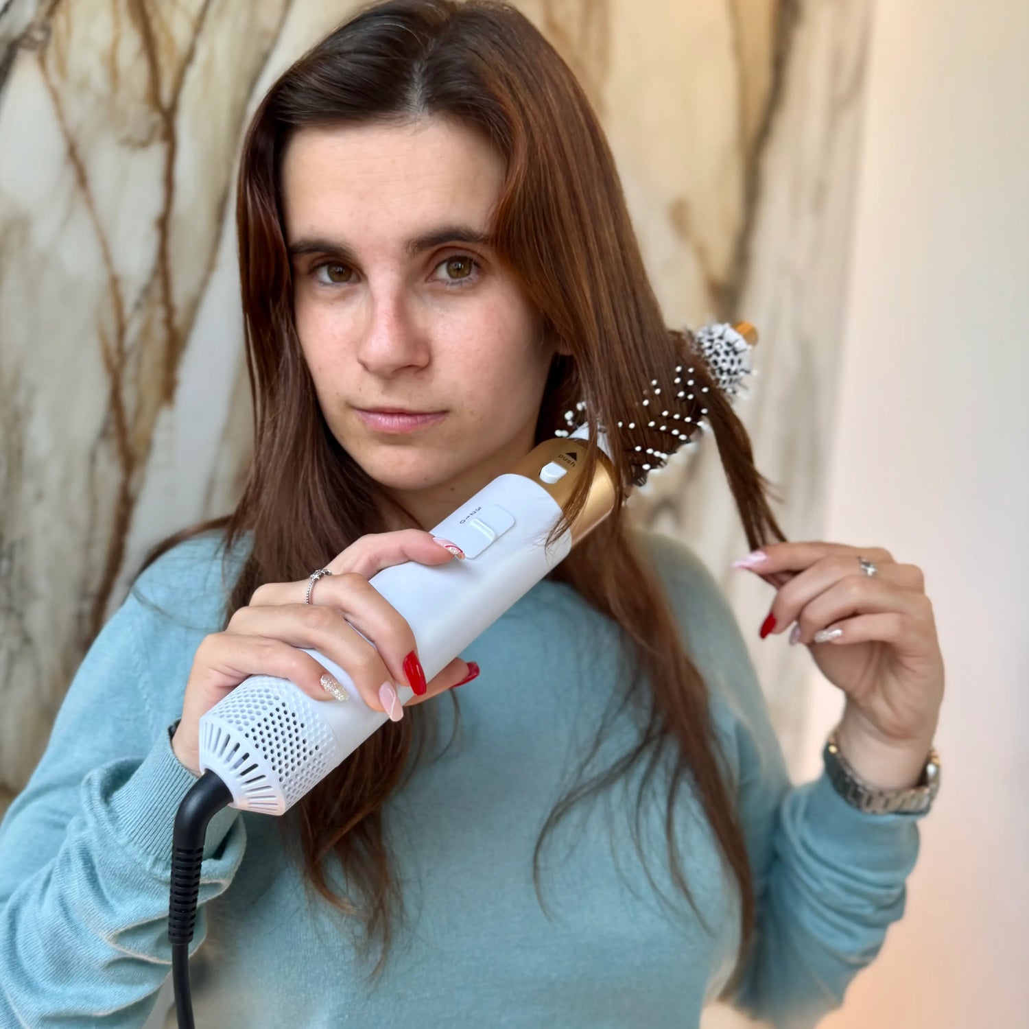 Peluquera certificada, Centro Room: "Recomiendo Air Glow™ a mis clientas que quieren peinarse en casa sin dañar su cabello. Es práctico, potente y deja un acabado de peluquería."